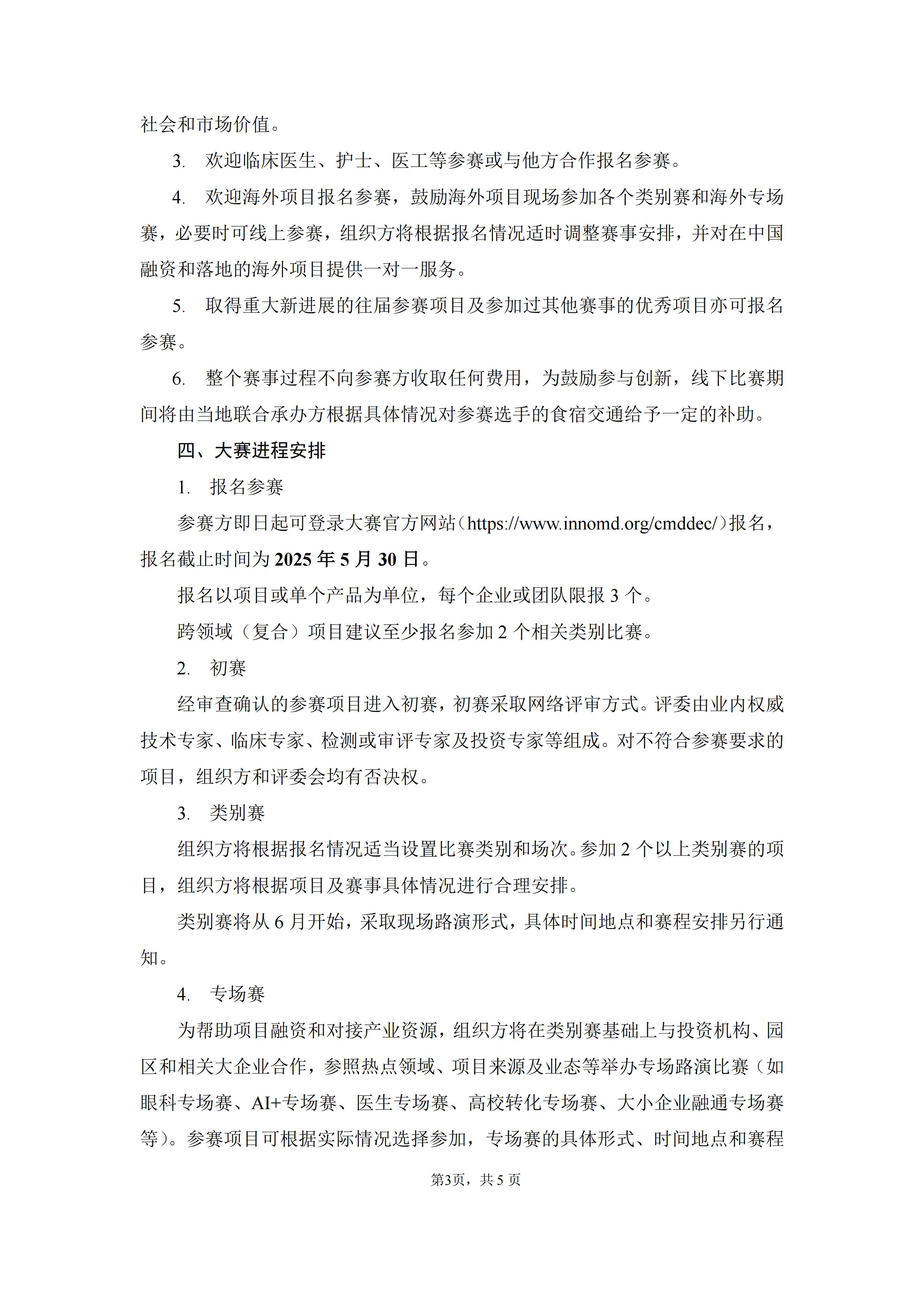 参赛方即日起可登录大赛官方网站(医疗器械创新网网://zhangjundi.com/cmddec/)报名,报名截止时间为2025年5月30日。